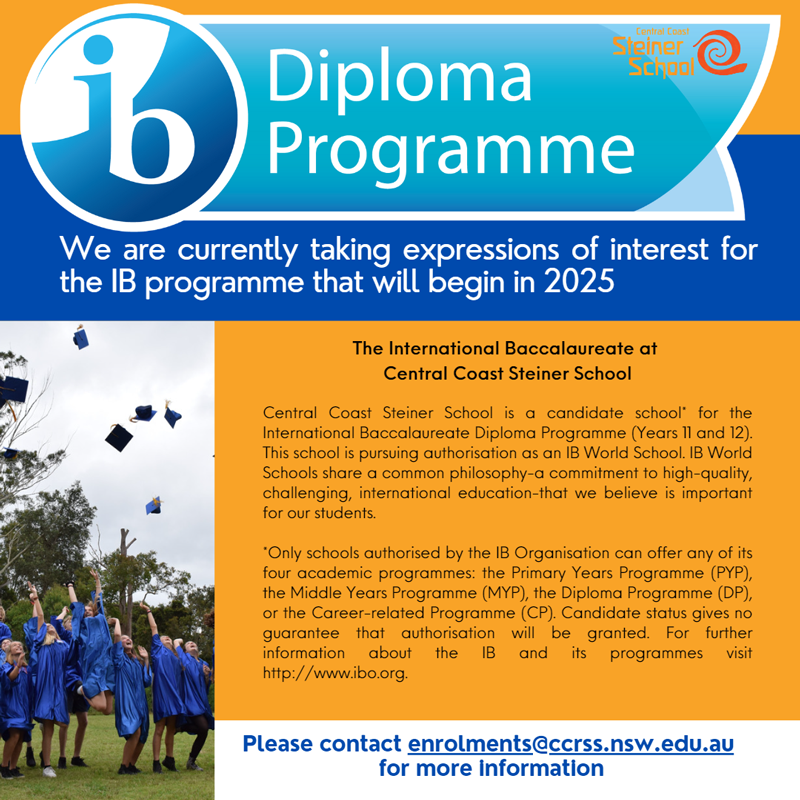 The Central Coast Steiner School is seeking teachers for the International Baccalaureate Diploma Program.