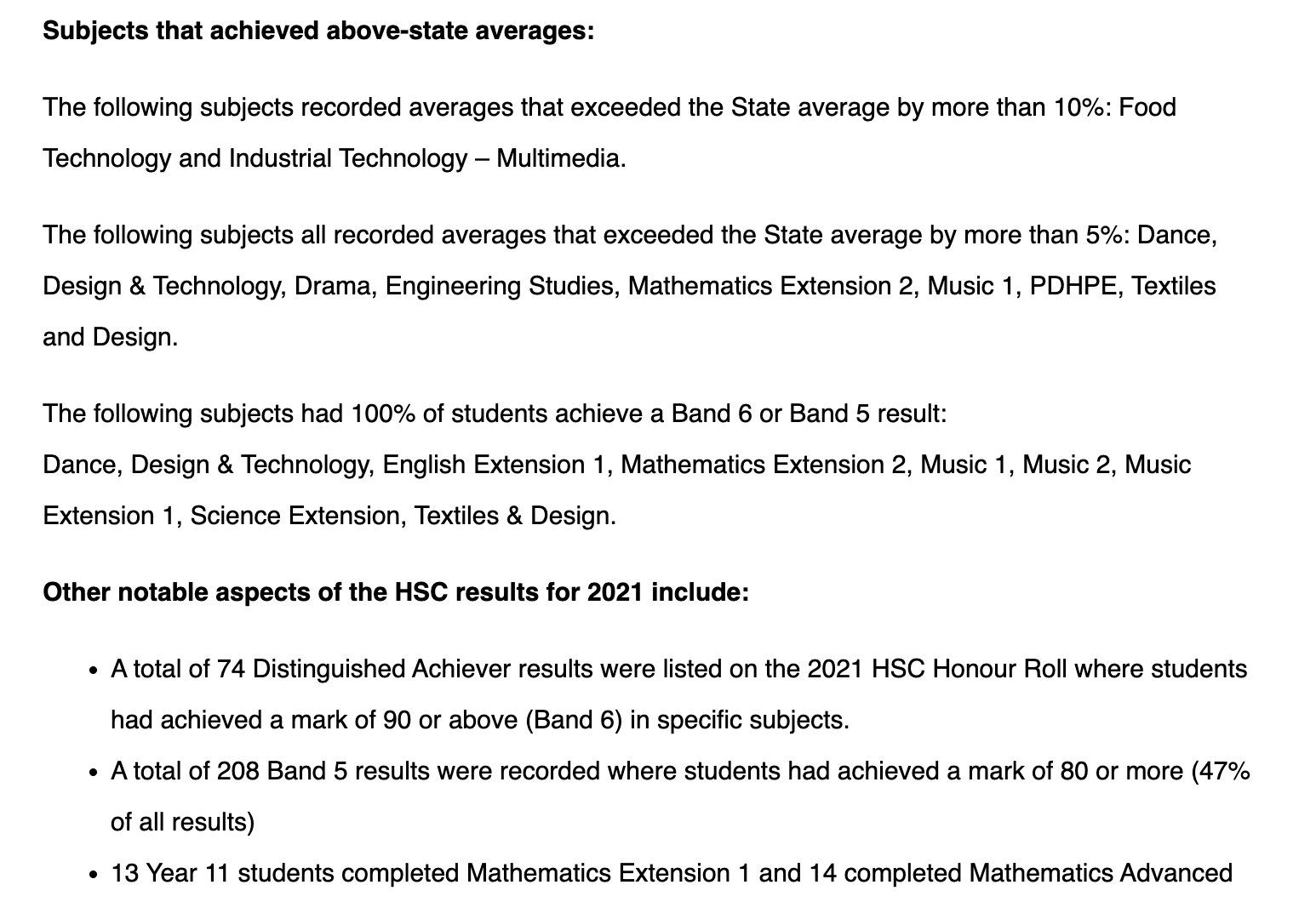 We acknowledge the achievements of all our students and highlight the following: